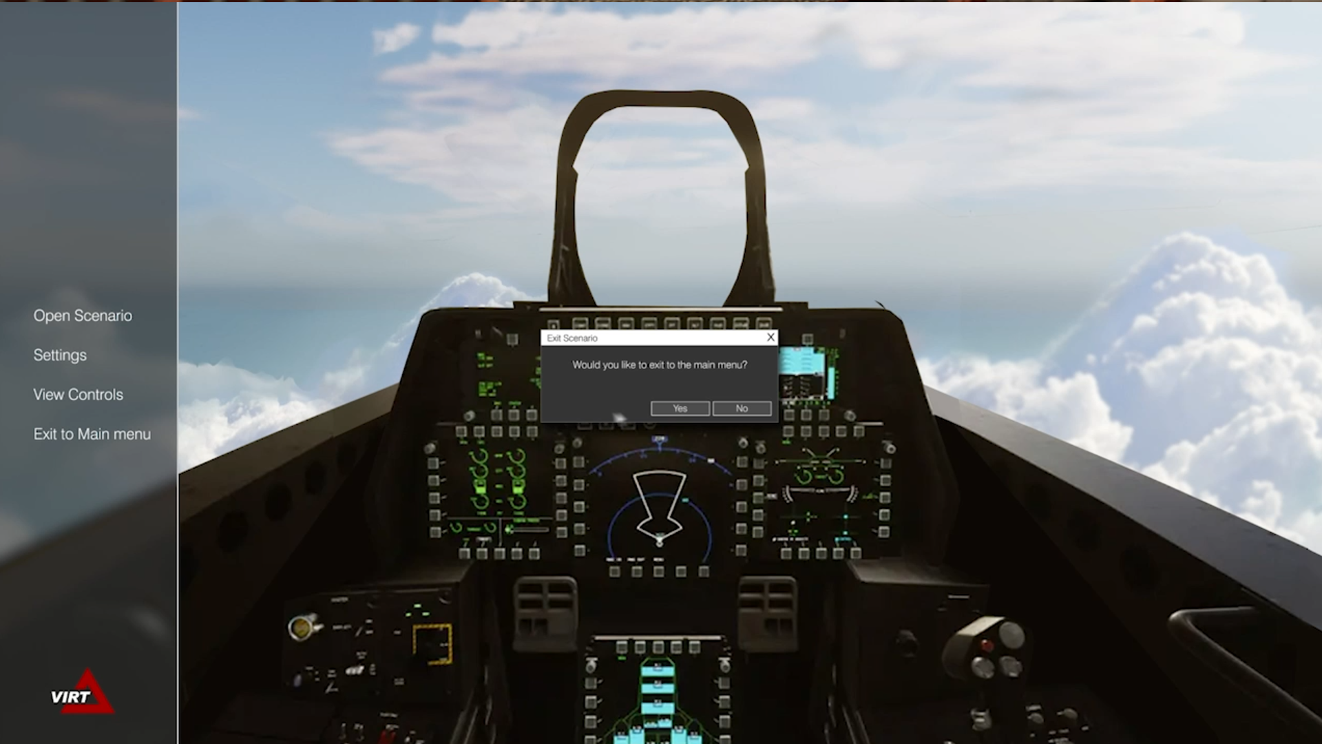 VIRT is a Immersive Virtual Trainer that teaches pilots how to visually identify enemy aircraft (red weapon systems).The application also had a PC based scenario editor which instructors could create unique encounters for student pilots.